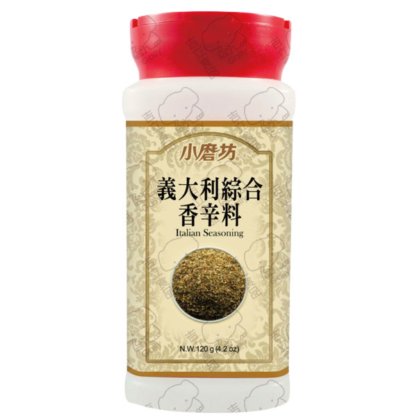 小磨坊精心調製,以優質洋香菜、羅勒、奧勒岡等調配而成,富有地中海香草的清新芬芳風味,口感溫和,是義大利經典的綜合香料配方,讓你隨手就可烹調出道地的義式料理。